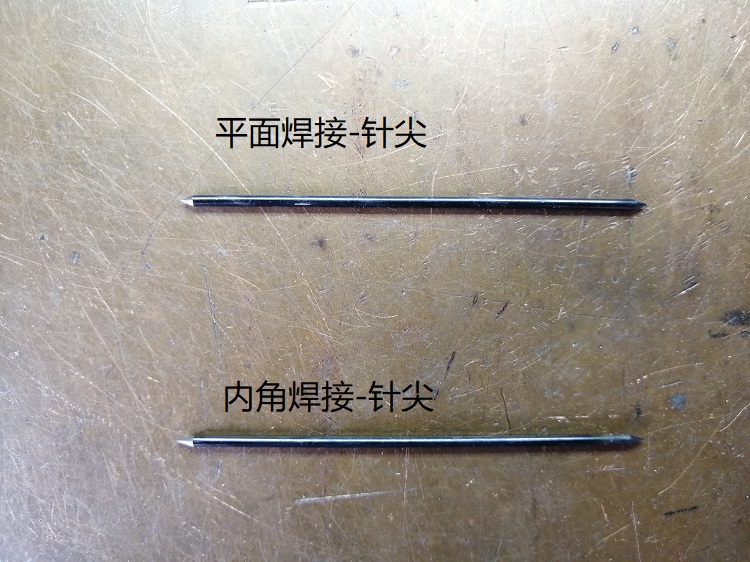2.把鎢針用細砂輪磨細點(平面焊接鎢針圓錐形,內直角需細長尖) 。